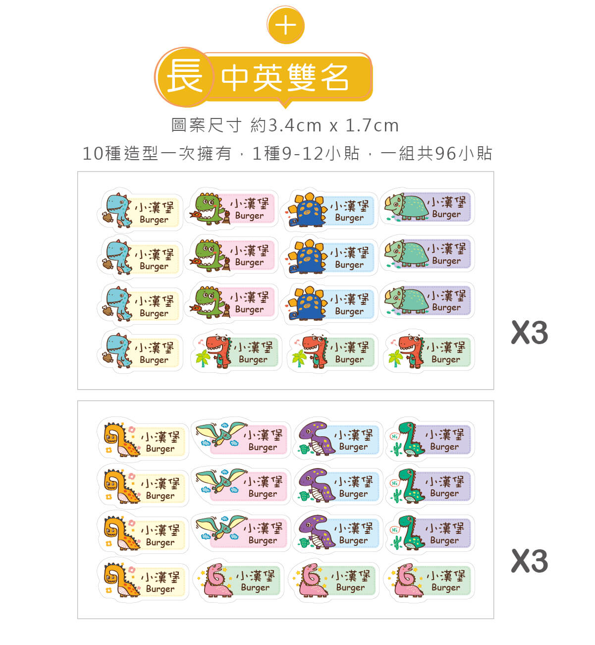 ▶ 一組高級防水姓名貼中英雙名(方形) 96入【可愛恐龍】G款