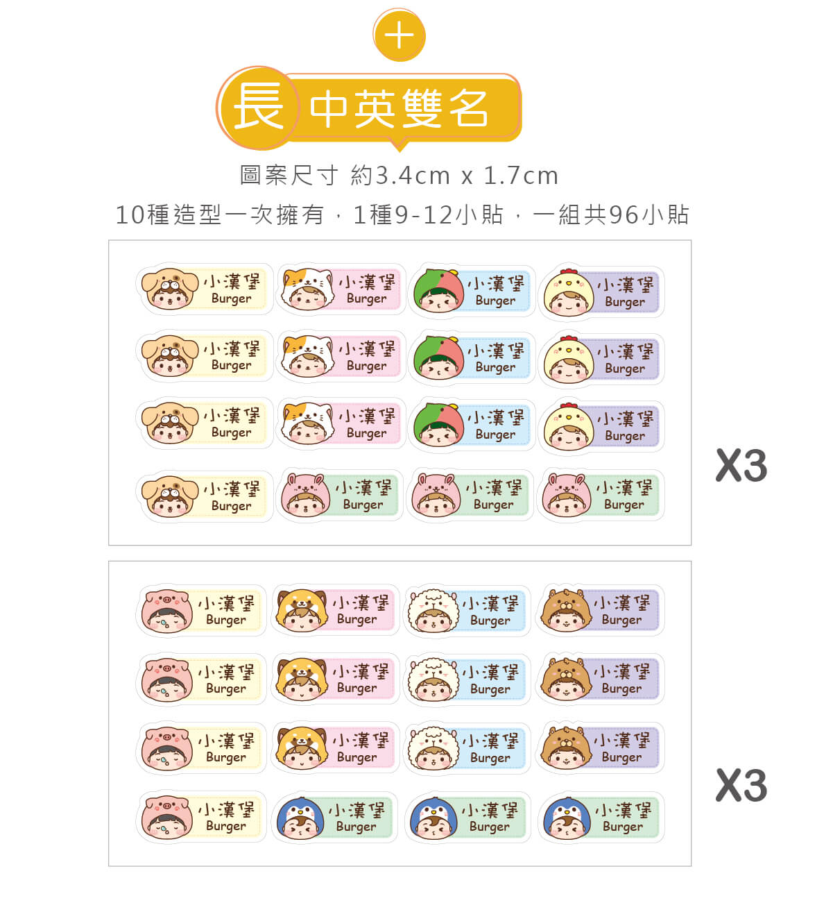 ▶ 其餘姓名貼中英文二擇一,若無特別標示會以中文為主喔