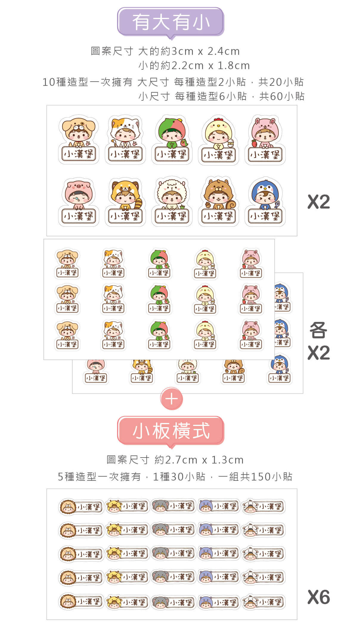▶ 一組高級防水姓名貼有大有小 80入【可愛動物變裝秀】Y款
