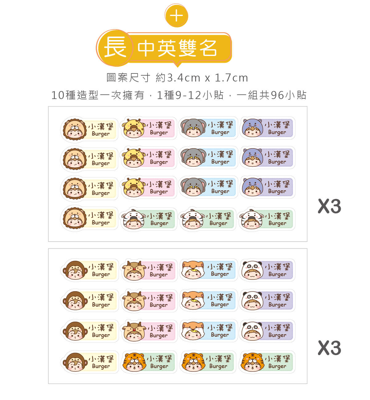 ▶ 一組高級防水姓名貼中英雙名(方形) 96入【草原動物變裝秀】Z 款