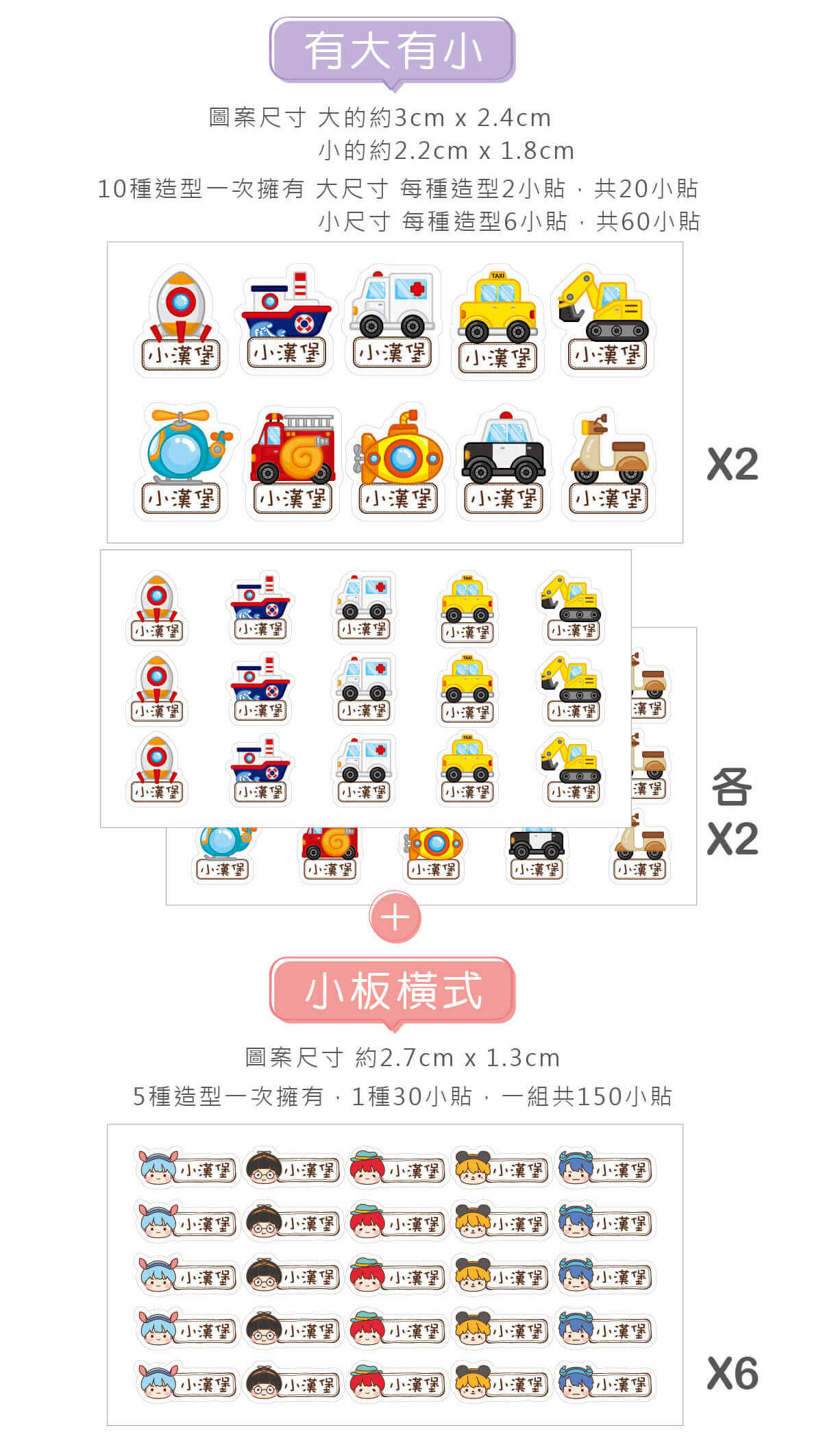▶ 一組高級防水姓名貼有大有小 80入【交通工具1】M款