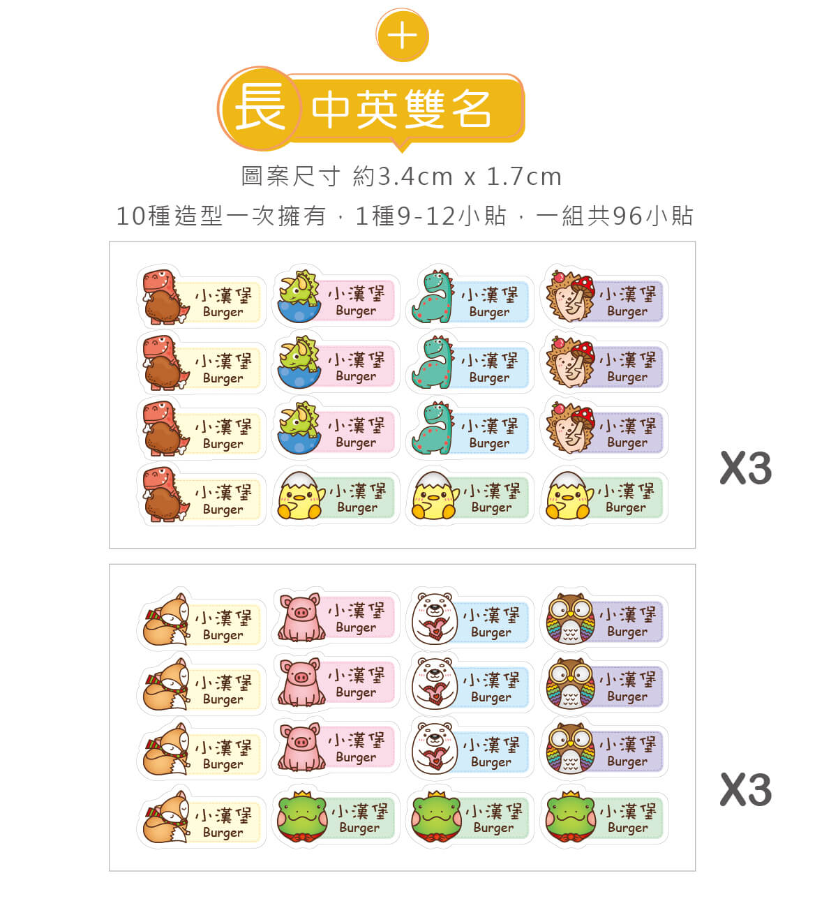 ▶ 其餘姓名貼中英文二擇一,若無特別標示會以中文為主喔