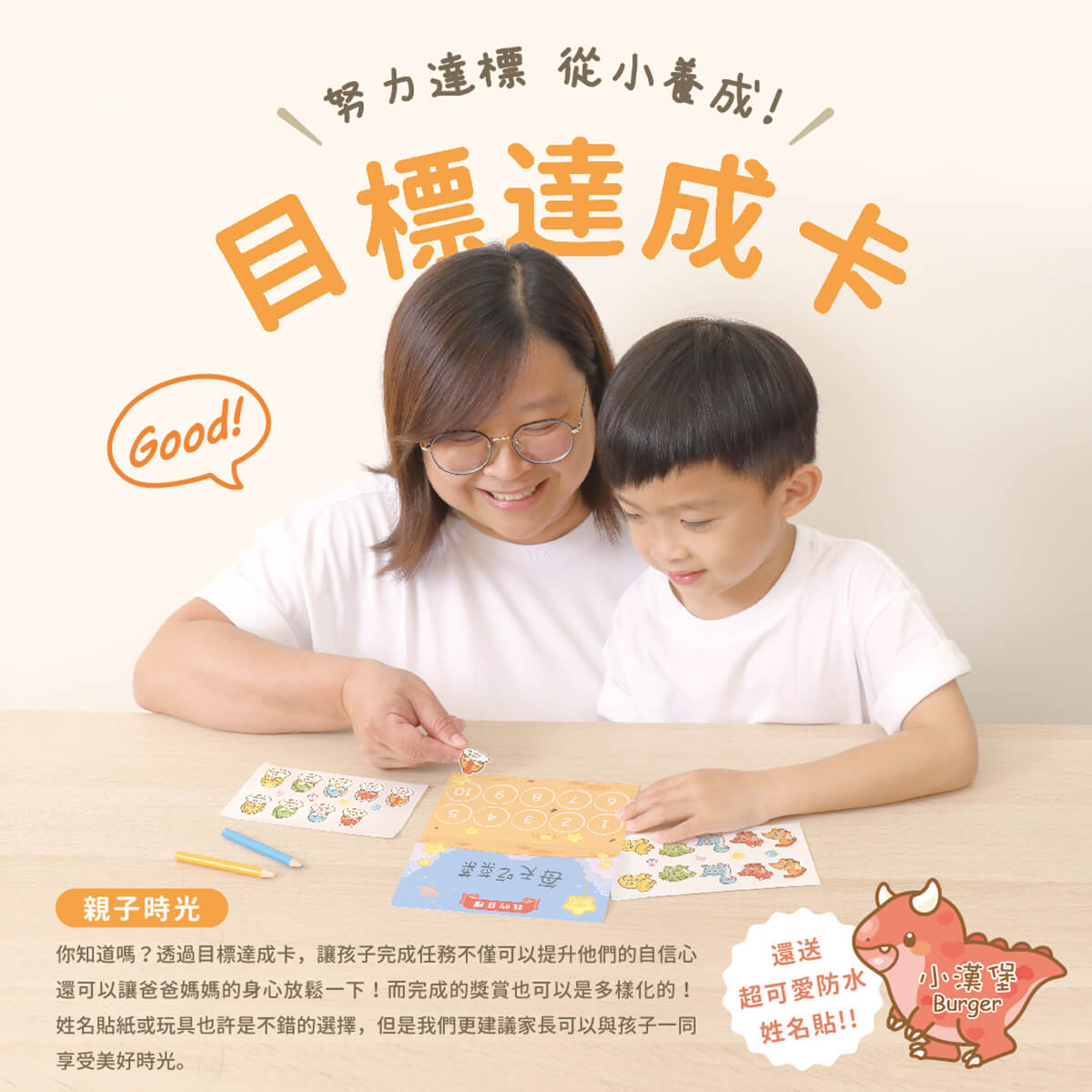透過目標達成卡,讓孩子完成任務不僅可以提升他們的自信心,還可以讓爸爸媽媽的身心放鬆一下!