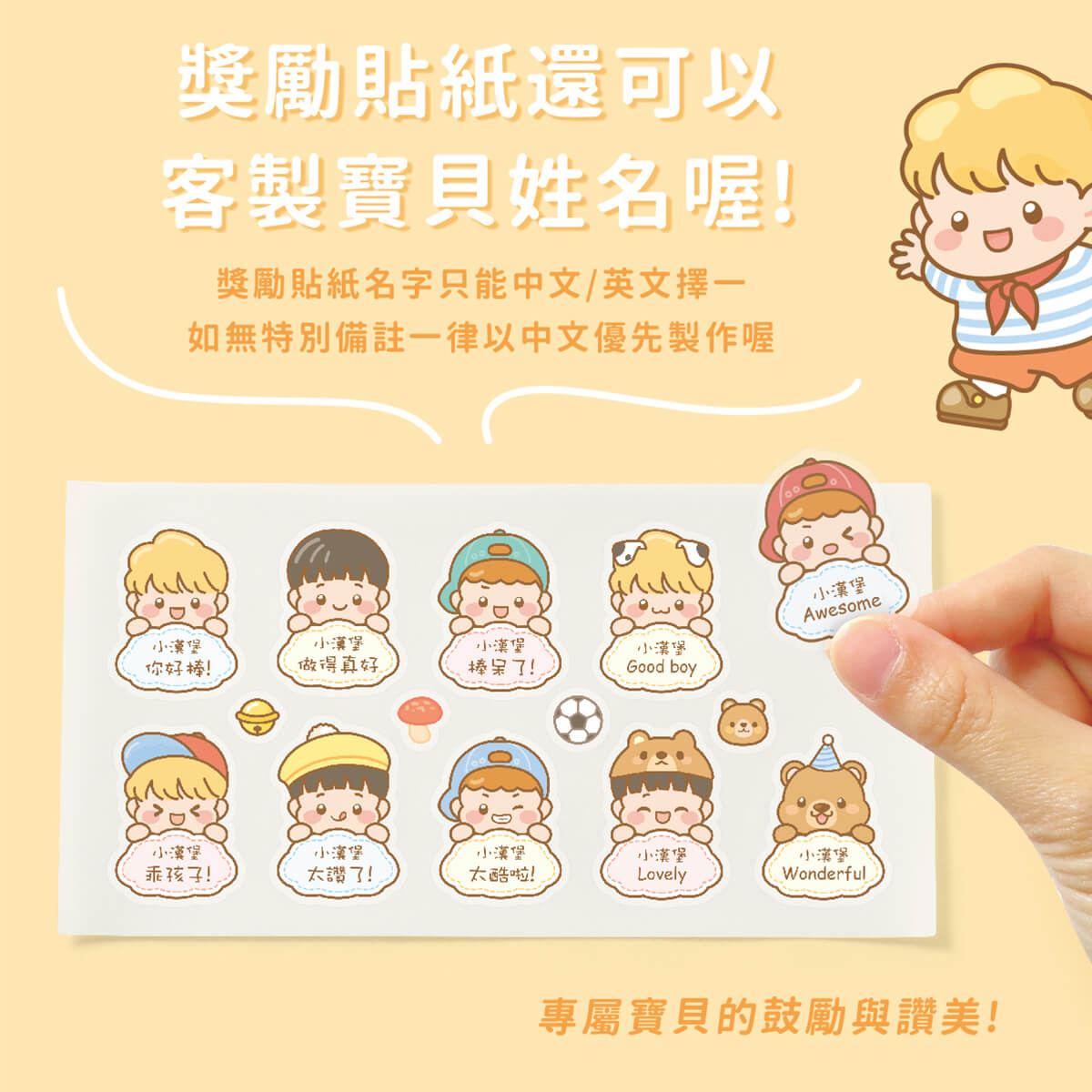 ▶ 此款獎勵貼中英文二擇一,若無特別標示會以中文為主喔