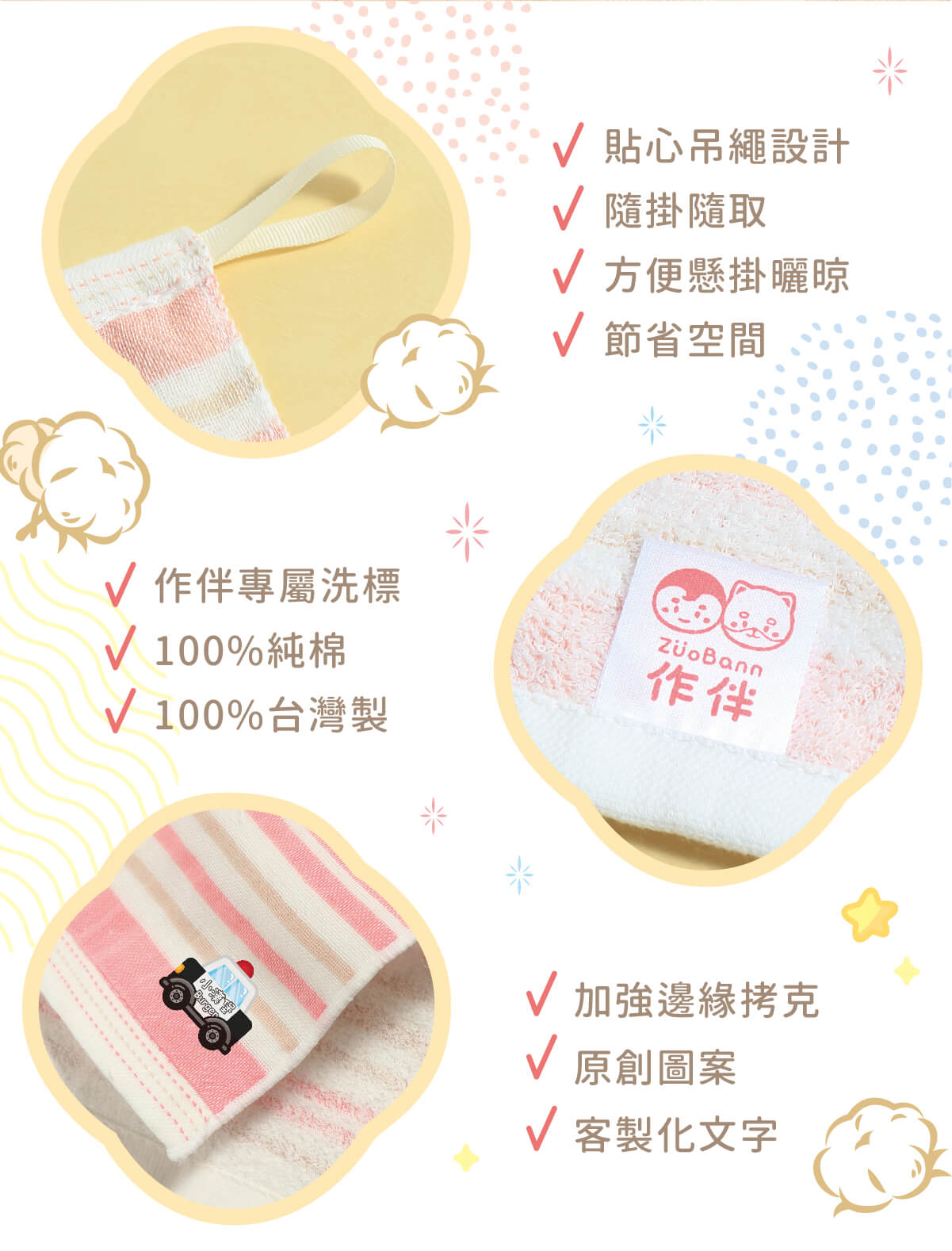 作伴的手帕巾,原創設計的可愛圖案,