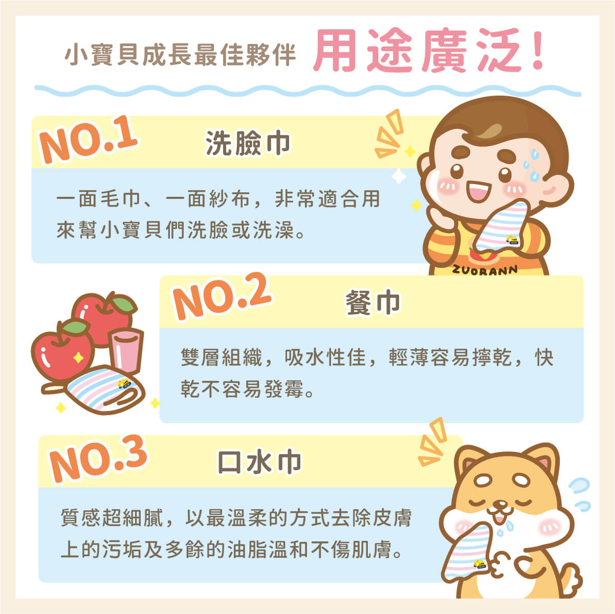 採用雙面織法,吸水性佳,輕薄容易擰乾。