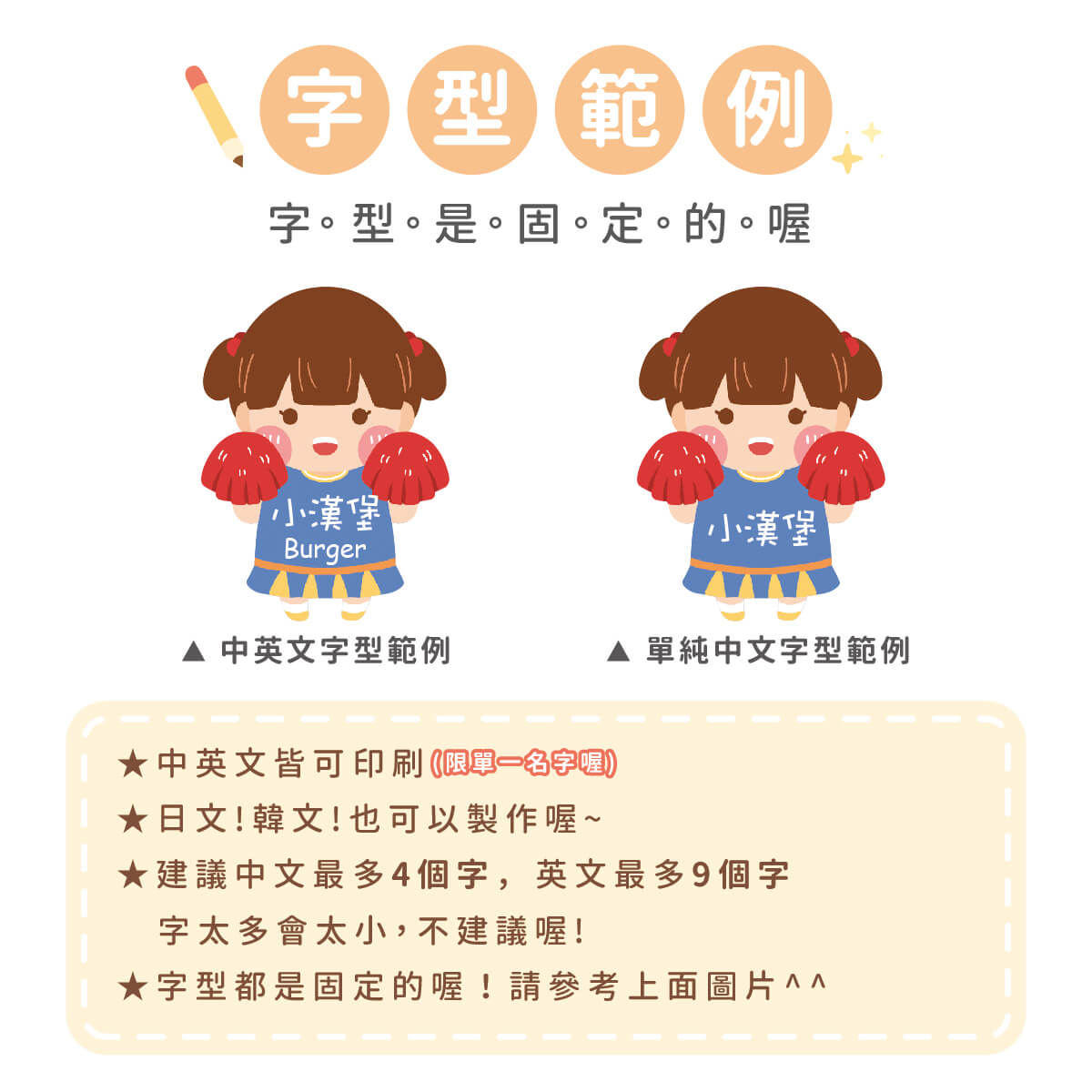 1. 燙印貼會依照訂單填寫內容製作,姓名部份不再另外做確認,請務必確認填寫內容是否正確