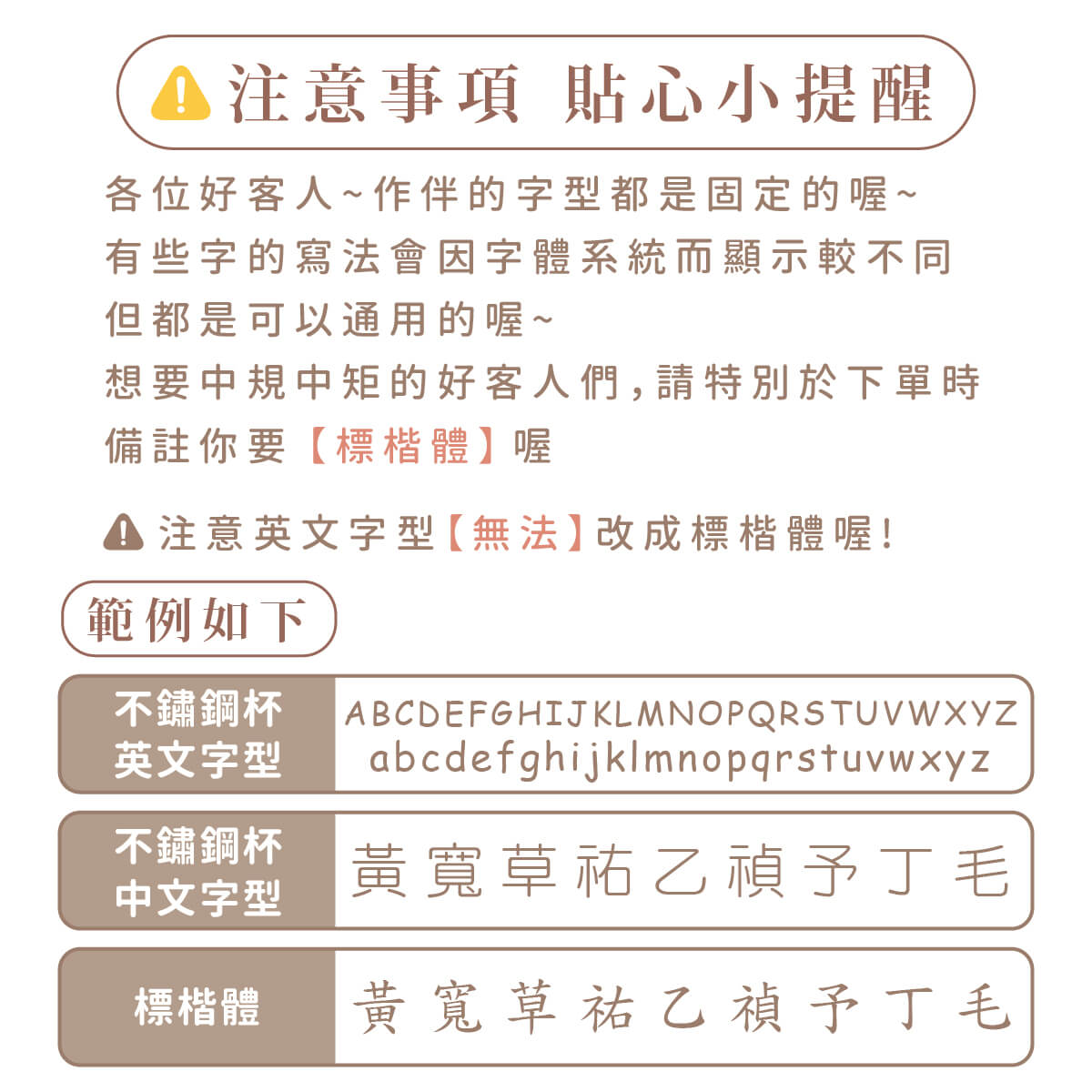 ▶ 字型都是固定的喔,如果想要中規中矩請備註要標楷體喔