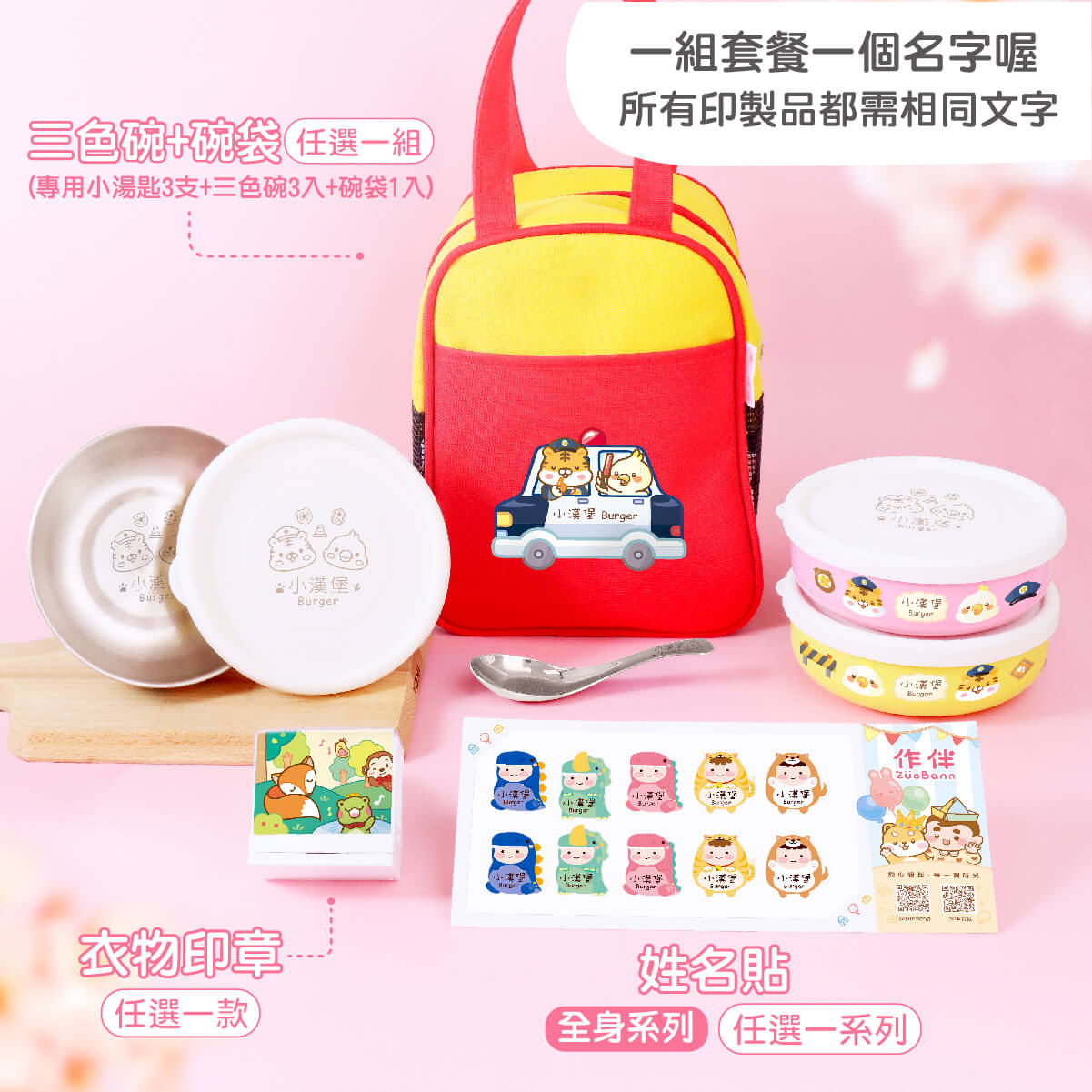 內容物:湯匙三入,碗三種顏色(甜心粉/天空藍/月亮黃)各一,共三入,碗袋一入