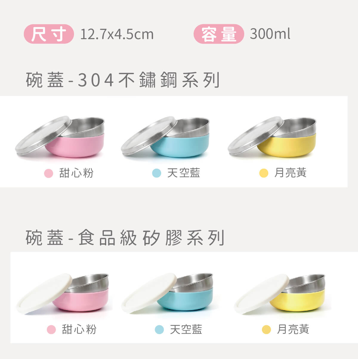 內容物:湯匙三入,碗三種顏色(甜心粉/天空藍/月亮黃)各一,共三入,碗袋一入