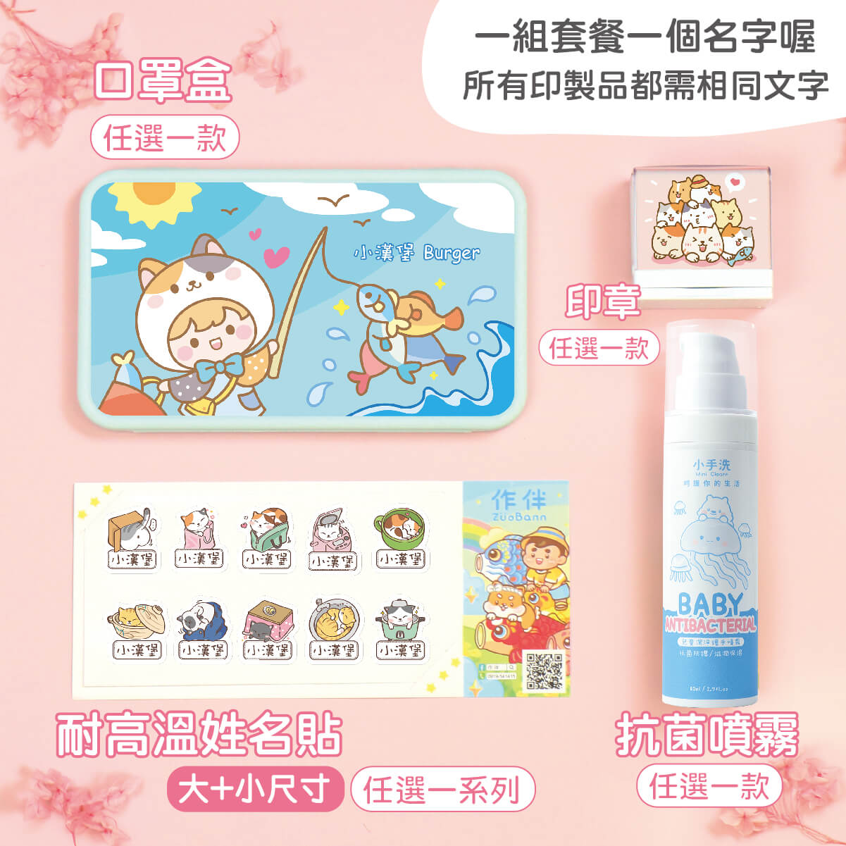 耐高溫姓名貼有大有小+印章+抗菌護手噴霧+口罩盒