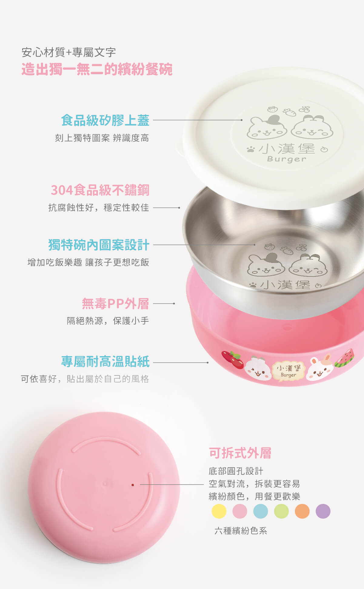 ▶ 三色碗可拆洗,一開始會比較緊,可以泡熱水,熱漲冷縮後就可以分離囉