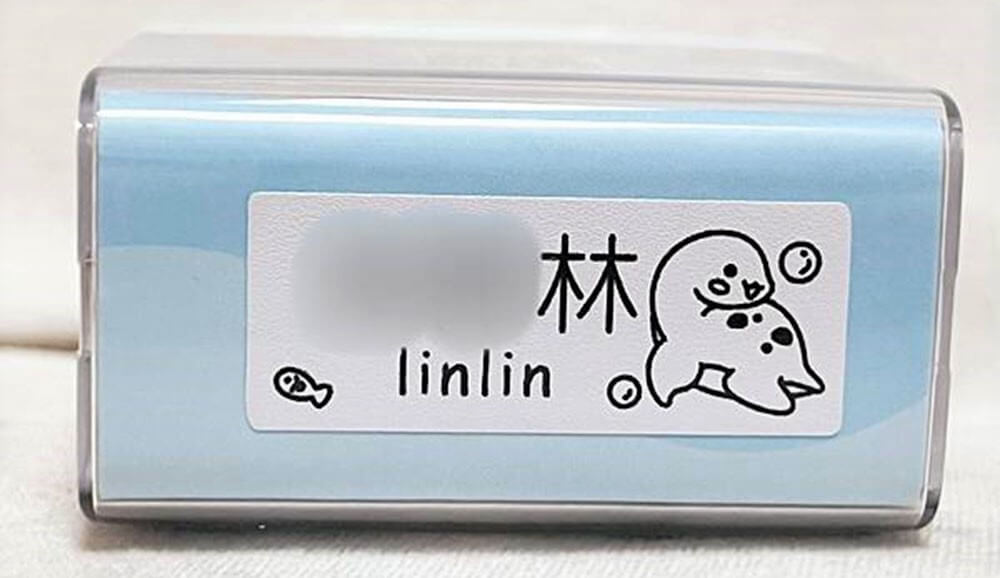 林林選了可愛的滄龍圖案,搭配著中英名字,專屬林林的印章。