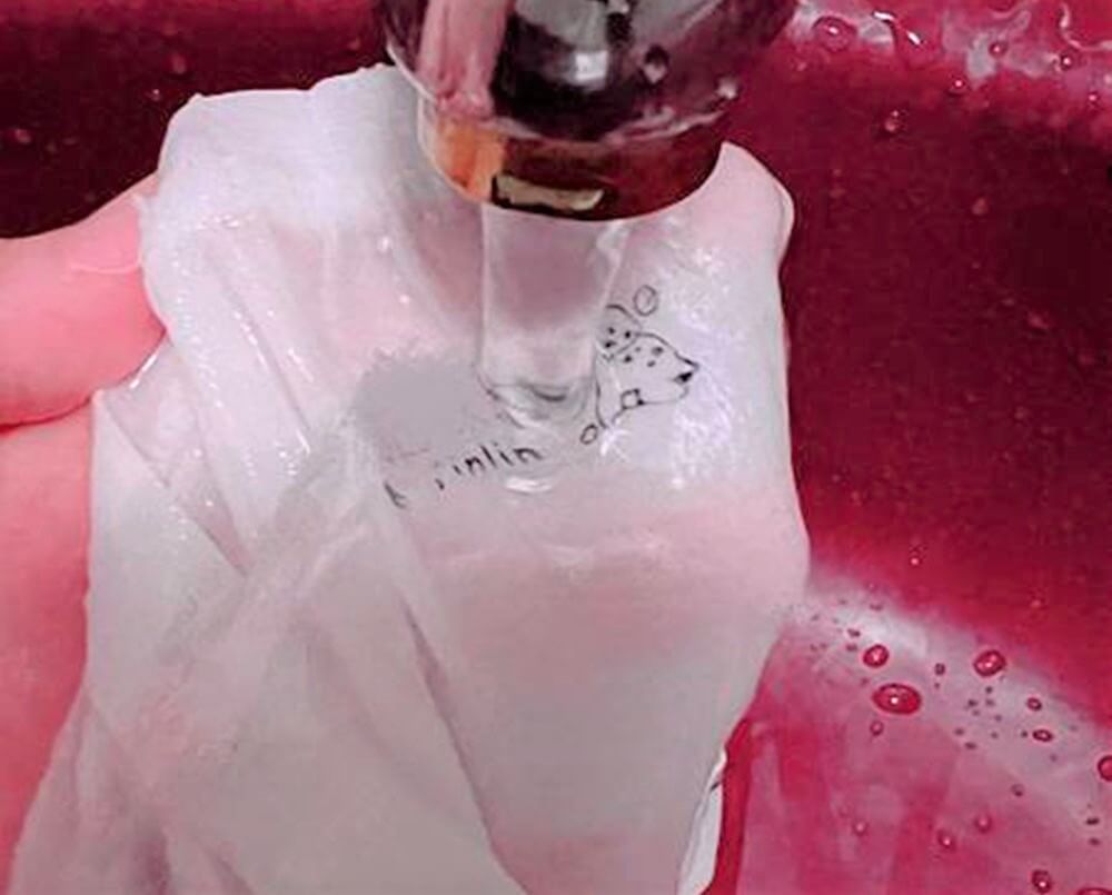 可水洗不會褪色唷~印章蓋上衣物需等待24小時後在洗滌。