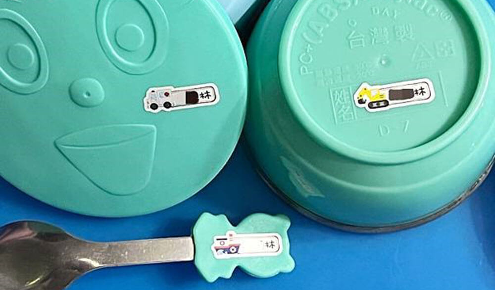 連蓋子也能貼一張姓名貼唷~耐高溫又耐用,不怕有塑化劑問題產生。
