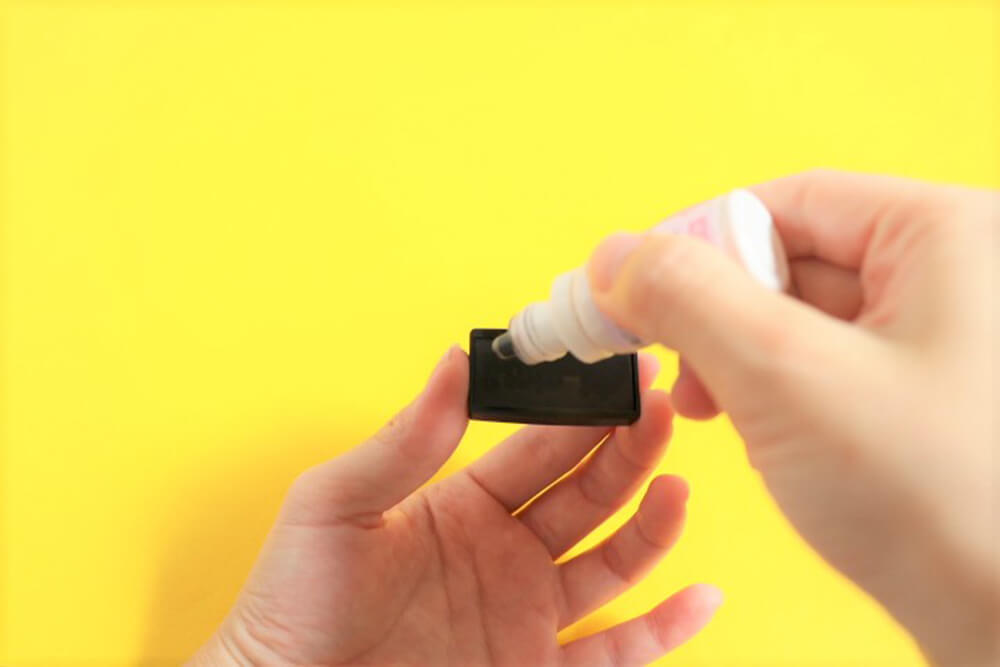 4.在印台滴上適量專用墨水,左右搖晃讓吸收更均勻。