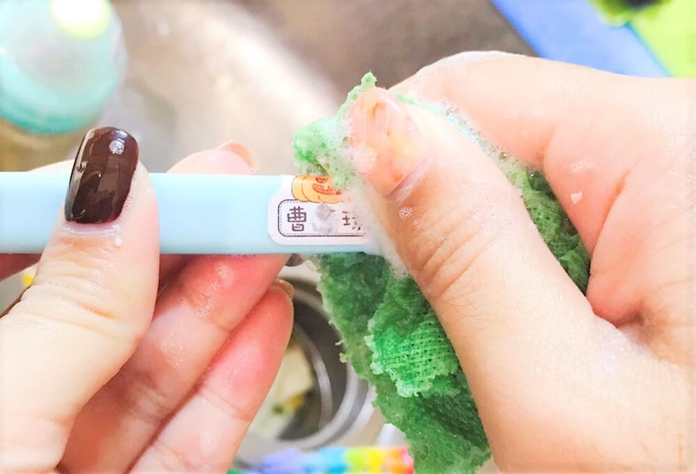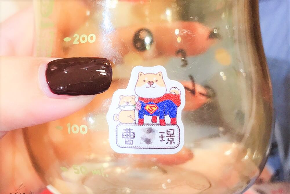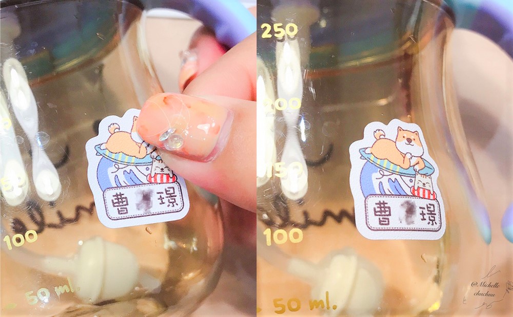 特別用不防水的姓名貼貼在需要洗的餐具上嗎?」