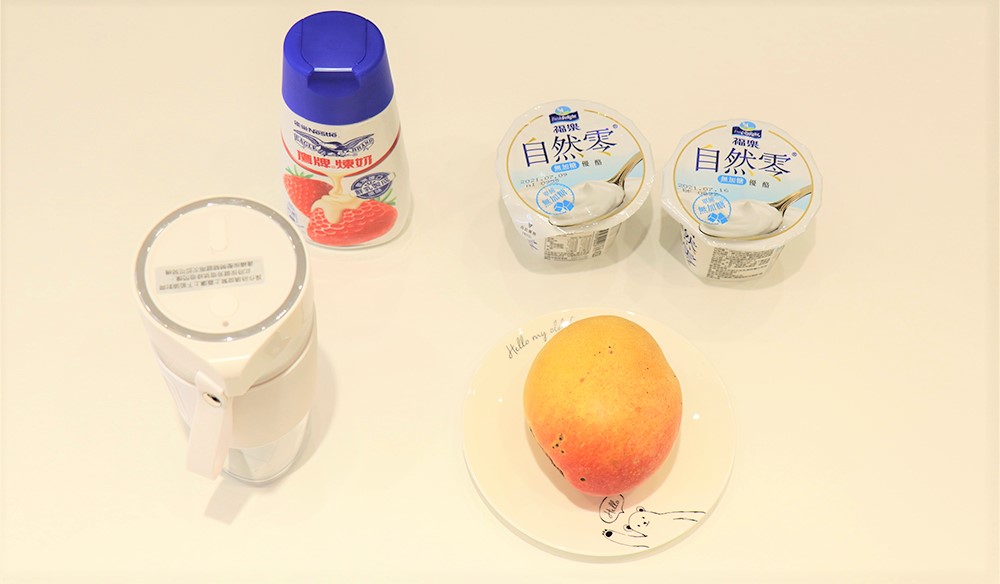 準備材料:芒果、無糖優格、果汁機、煉乳適量