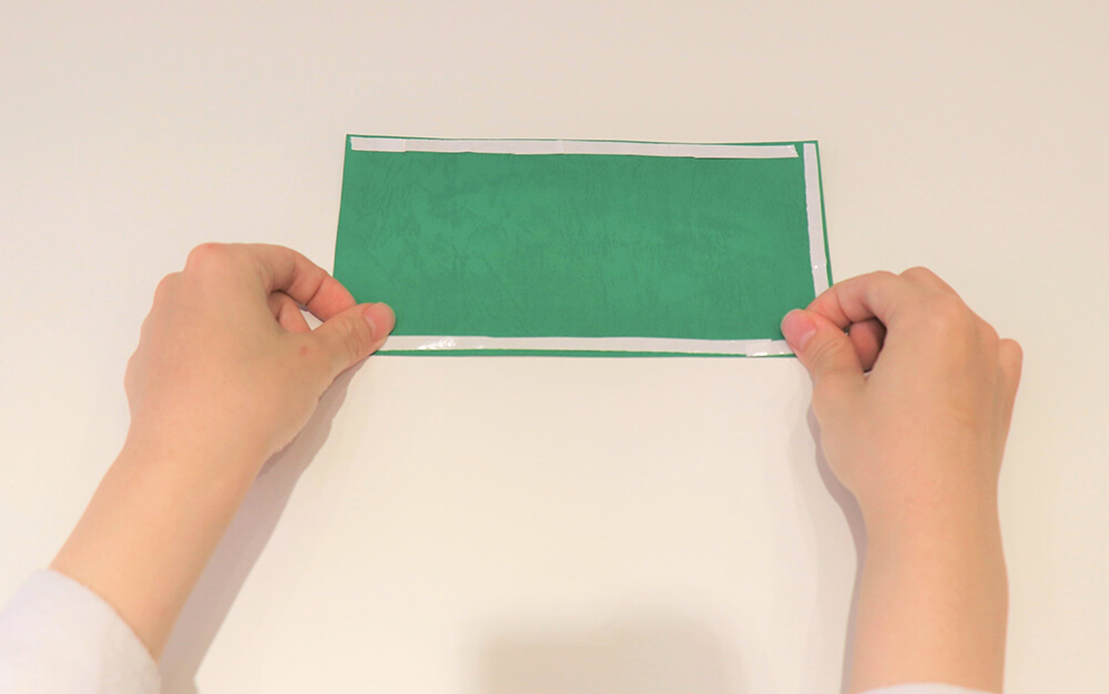 步驟1. 裁剪一張20x10公分的綠色紙張,在三邊貼上雙面膠。