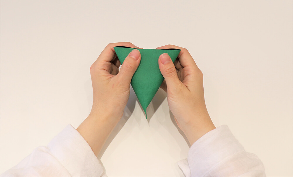 步驟5. 轉到側邊對齊上部並黏好,形狀就像粽子的三角體。