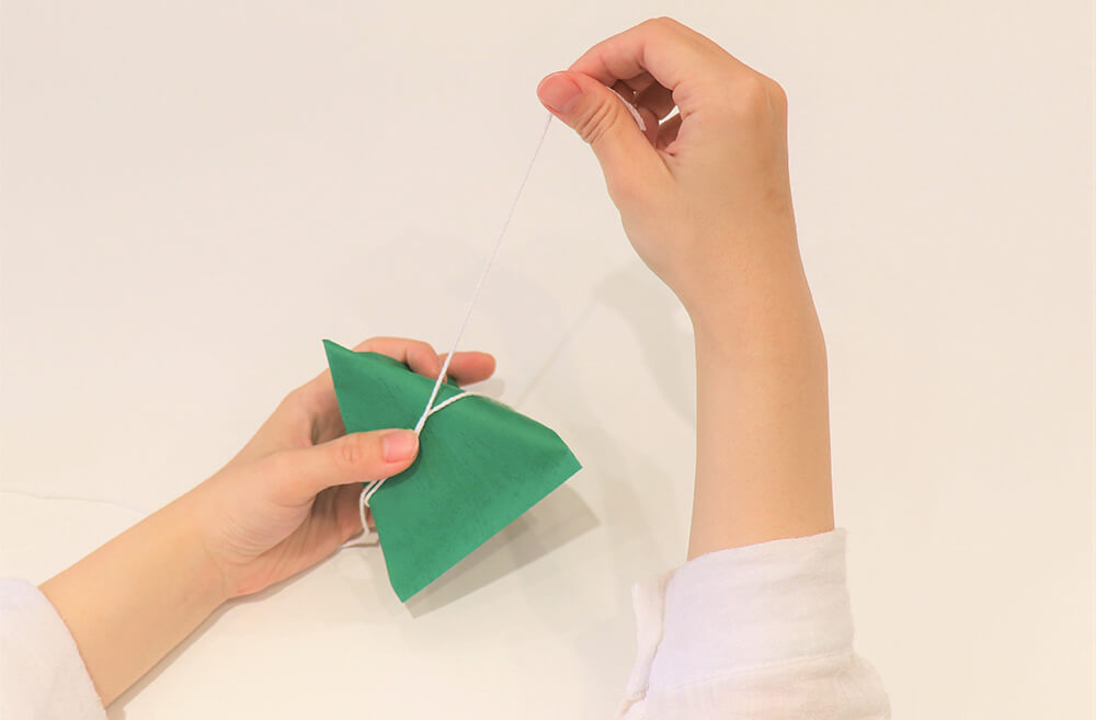 步驟6.拿棉繩從粽子某處開始纏繞,並打兩個平結。
