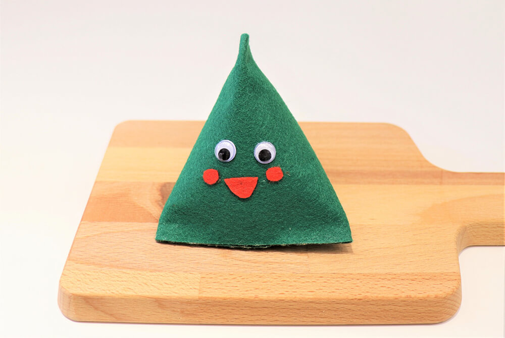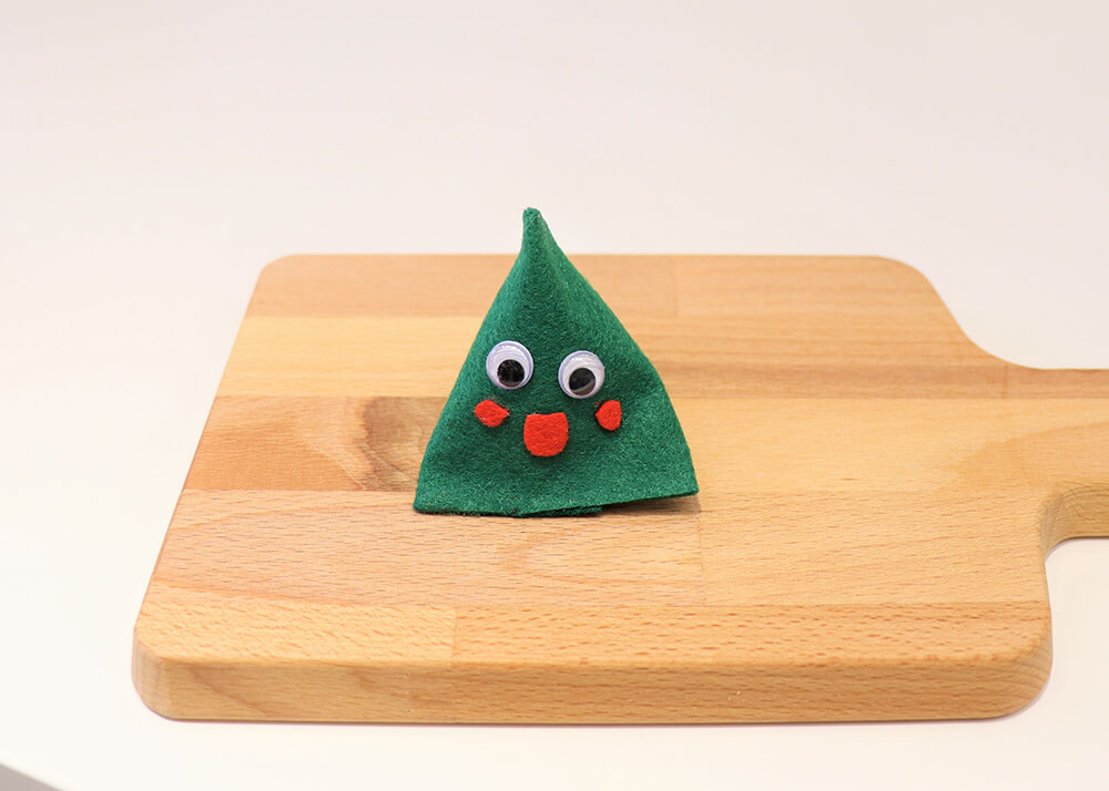 步驟6.再黏上動動眼睛,紅色不織布當作嘴巴和腮紅就完成囉!