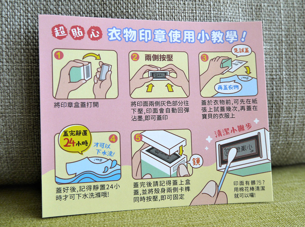 但是姓名印章蓋在衣物上,不免會接觸寶貝的肌膚,媽媽我考量很多。