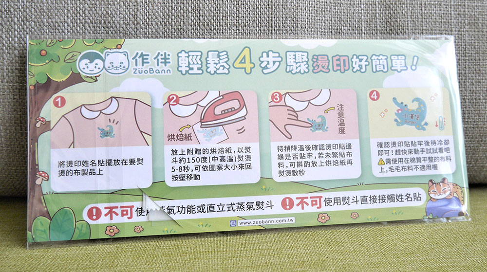 這款熨燙姓名貼在使用的時候,因為會用到熨斗,要小心不要讓孩子靠近。