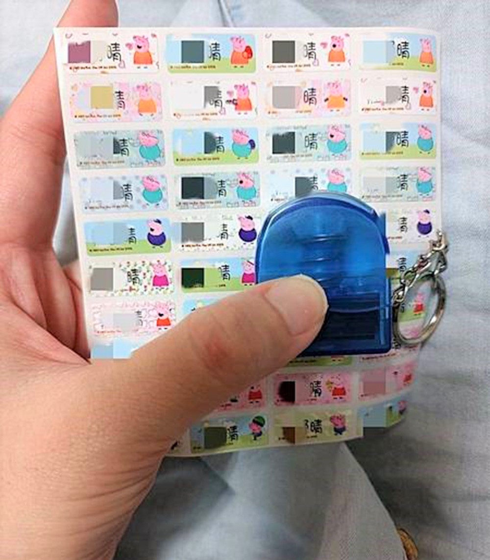 他們的衣物口罩專用姓名印章所使用的是幼兒專用無毒墨水,