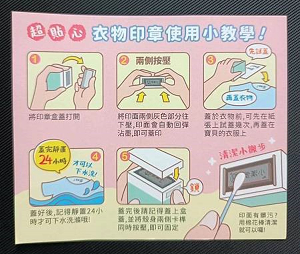 他們裡面不只姓名貼、衣物印章、乾洗手、衣物燙印貼...等,通通都很吸引我
