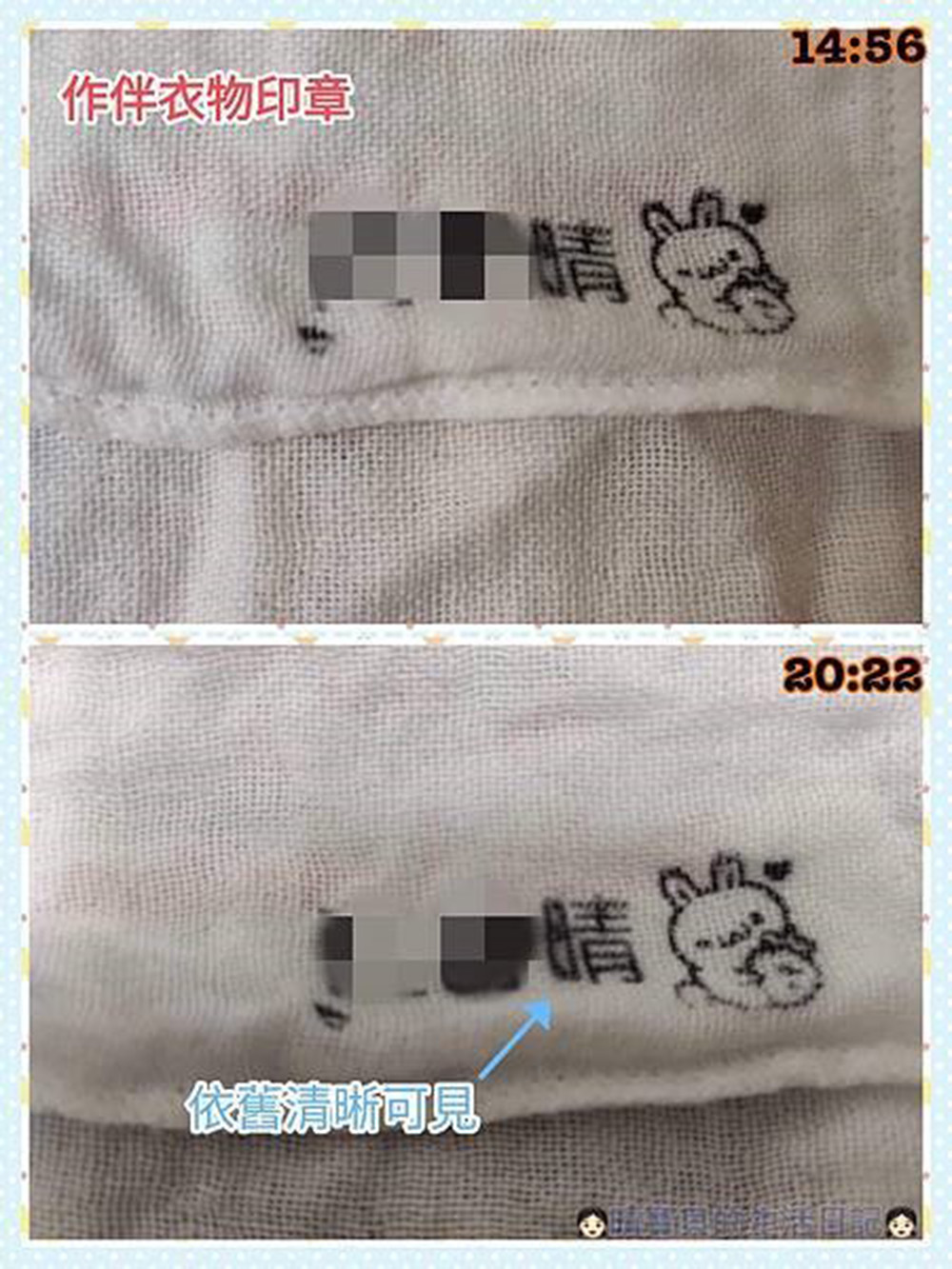 沒想到幾小時後他牌衣物印章的字居然模糊了,