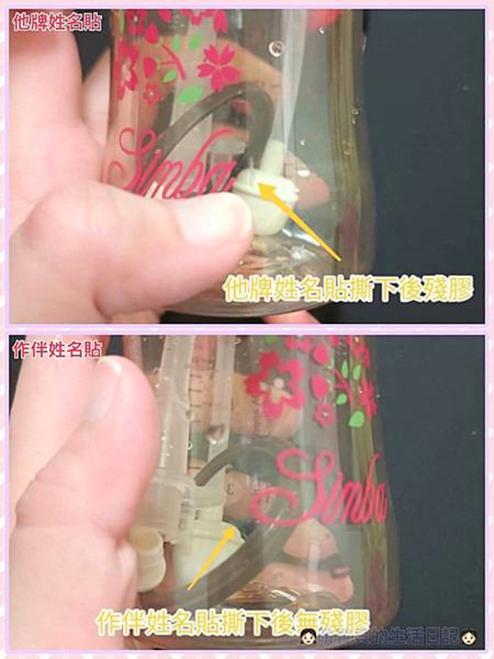 👆試著在同一握水杯貼上他牌及作伴姓名貼,測試撕下後的狀態