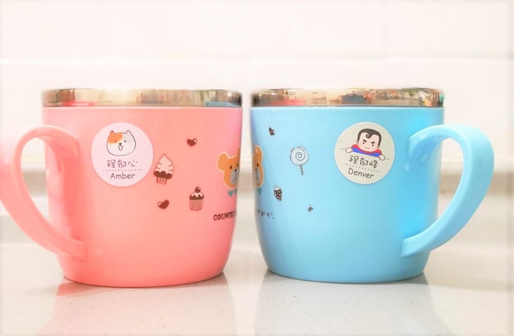 作伴姓名貼實際貼在小朋友杯子水壺上的樣子💦