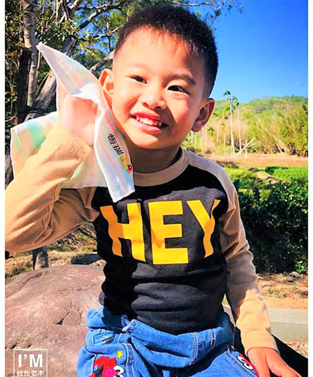 孩子拿著繡有自己名字的手帕巾,非常開心!