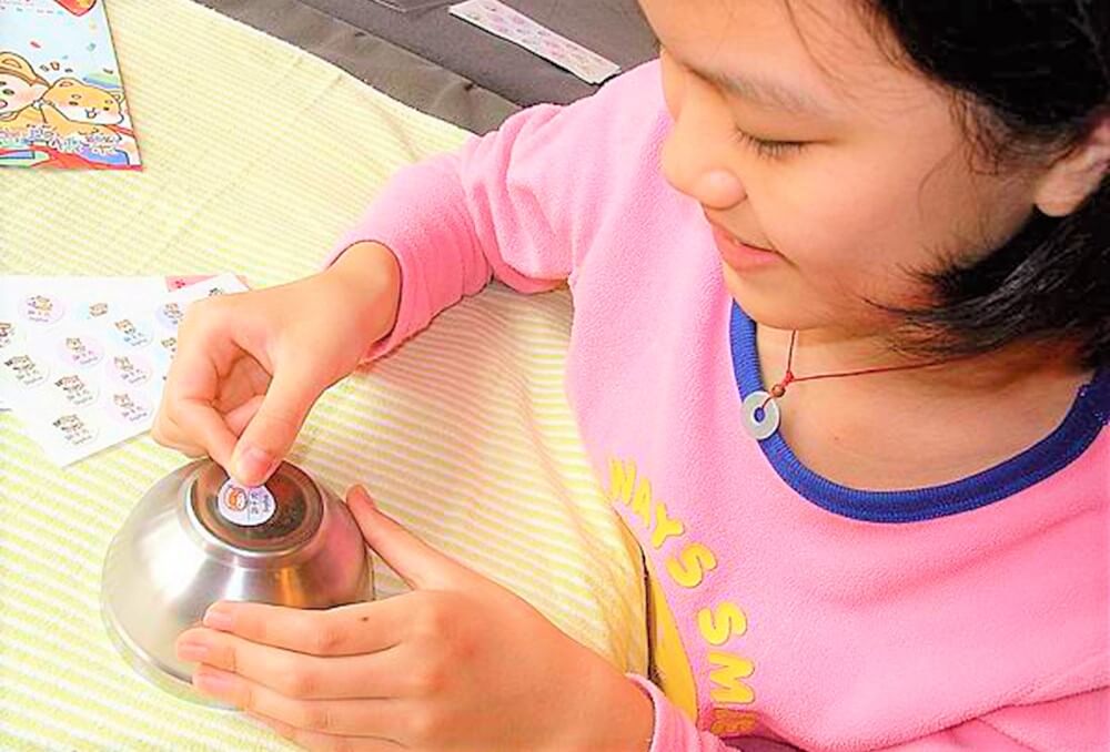 當不鏽鋼餐碗貼上了可愛的ZuoBann 作伴防水姓名貼