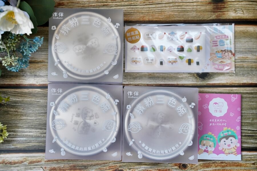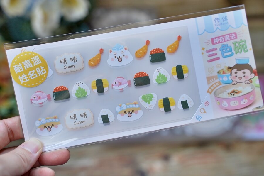 作伴 繽紛三色碗還附有耐高溫的姓名貼,