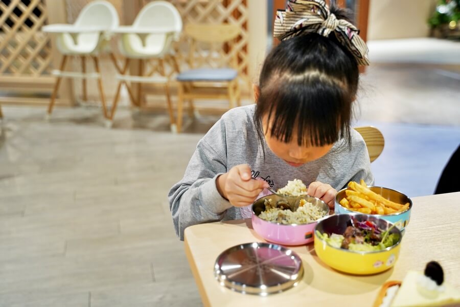 雖然餐廳也有餐具,但讓孩子用自己的餐具更安心,