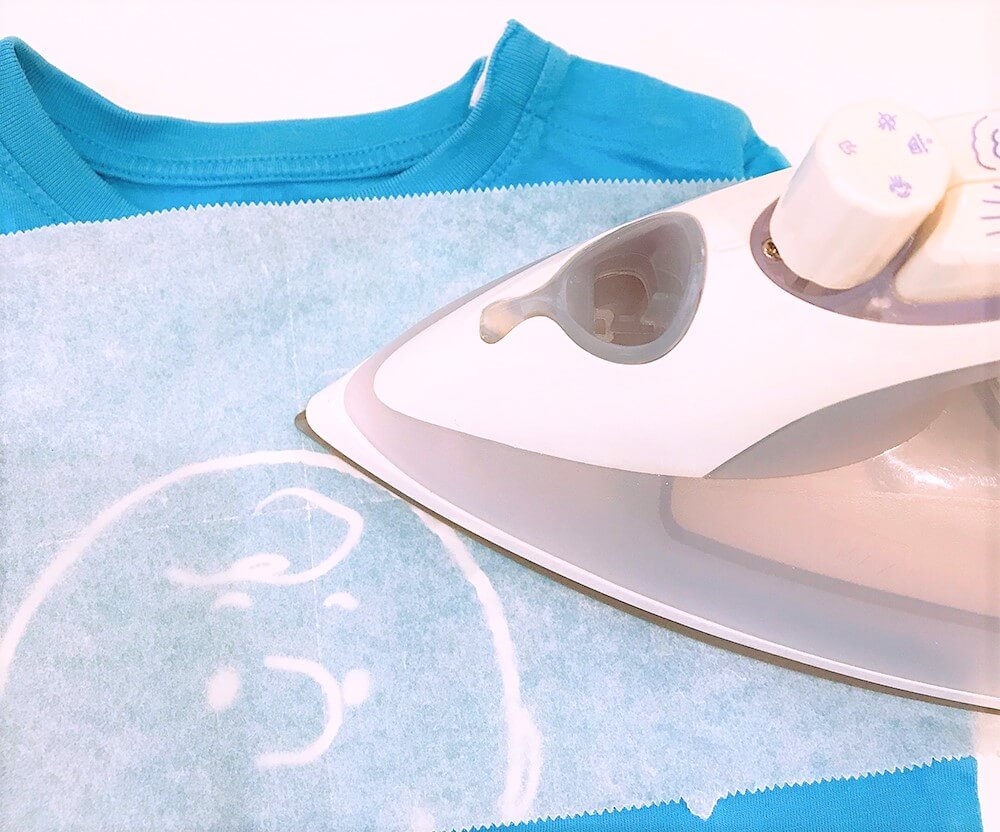 2.燙印貼上面放上烘焙紙,以熨斗來回熨燙。