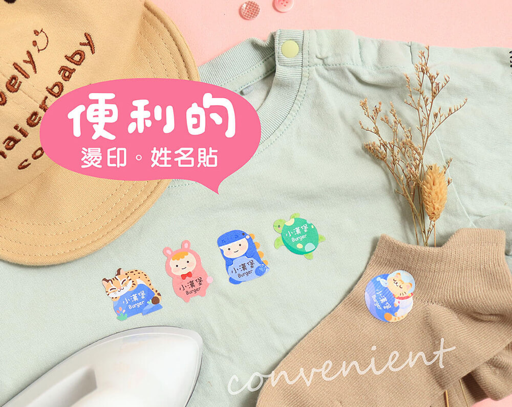 就像是在衣服上貼上姓名貼一樣, 只需10秒鐘就為小寶貝的衣服增添個人風格。