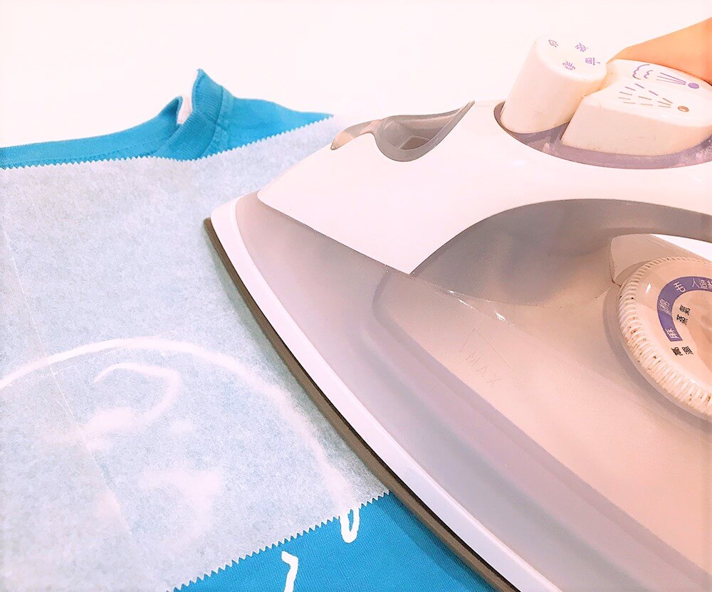 2.燙印貼上面放上烘焙紙,以熨斗來回熨燙。