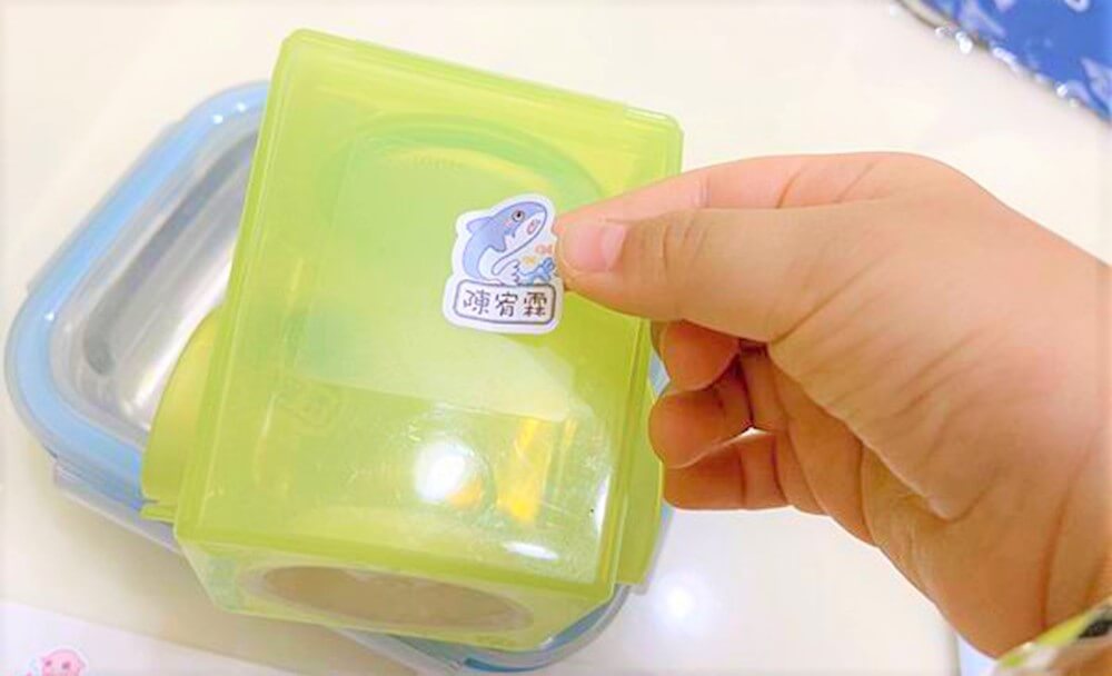 常用的餐盒、水杯都貼作伴防水姓名貼