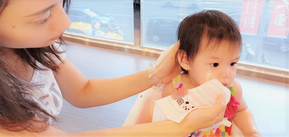 還有不管是外出或是在家中,在孩子熟睡的時候,用手帕巾幫她遮擋強光,讓孩子睡得更安穩。