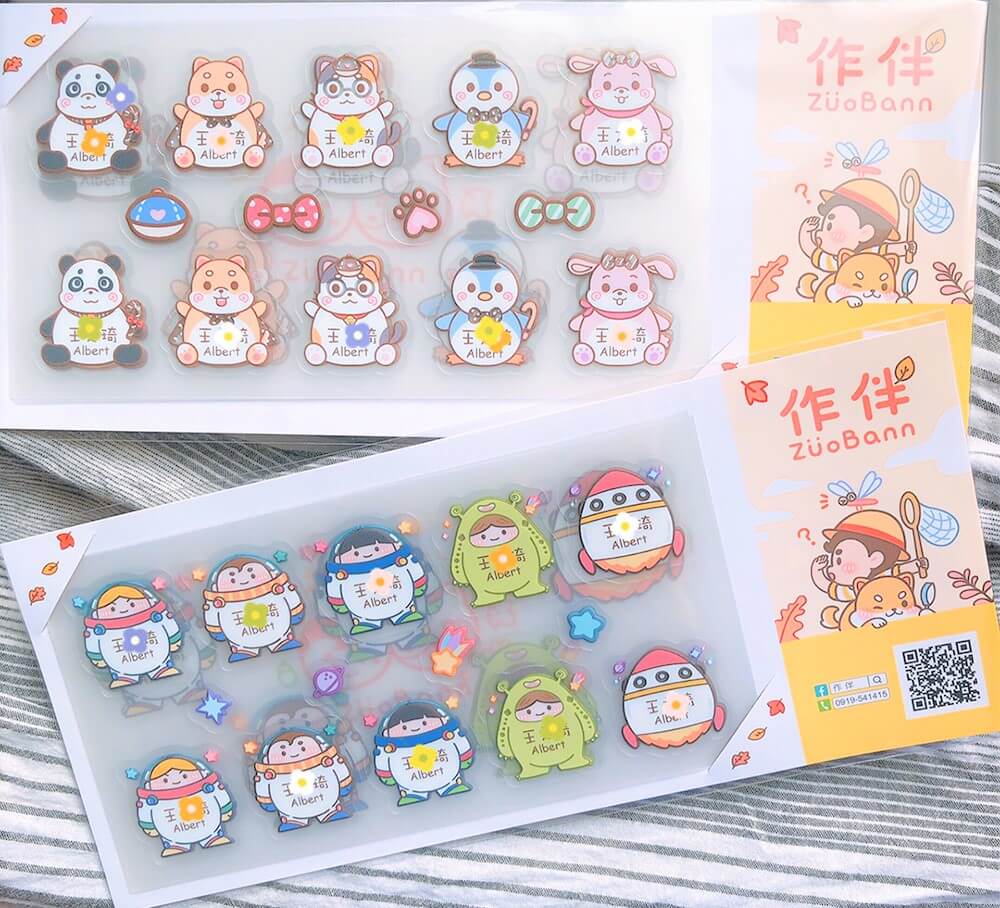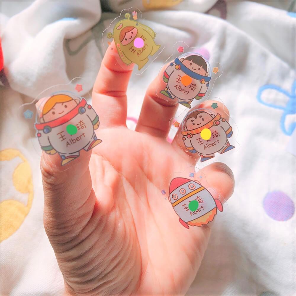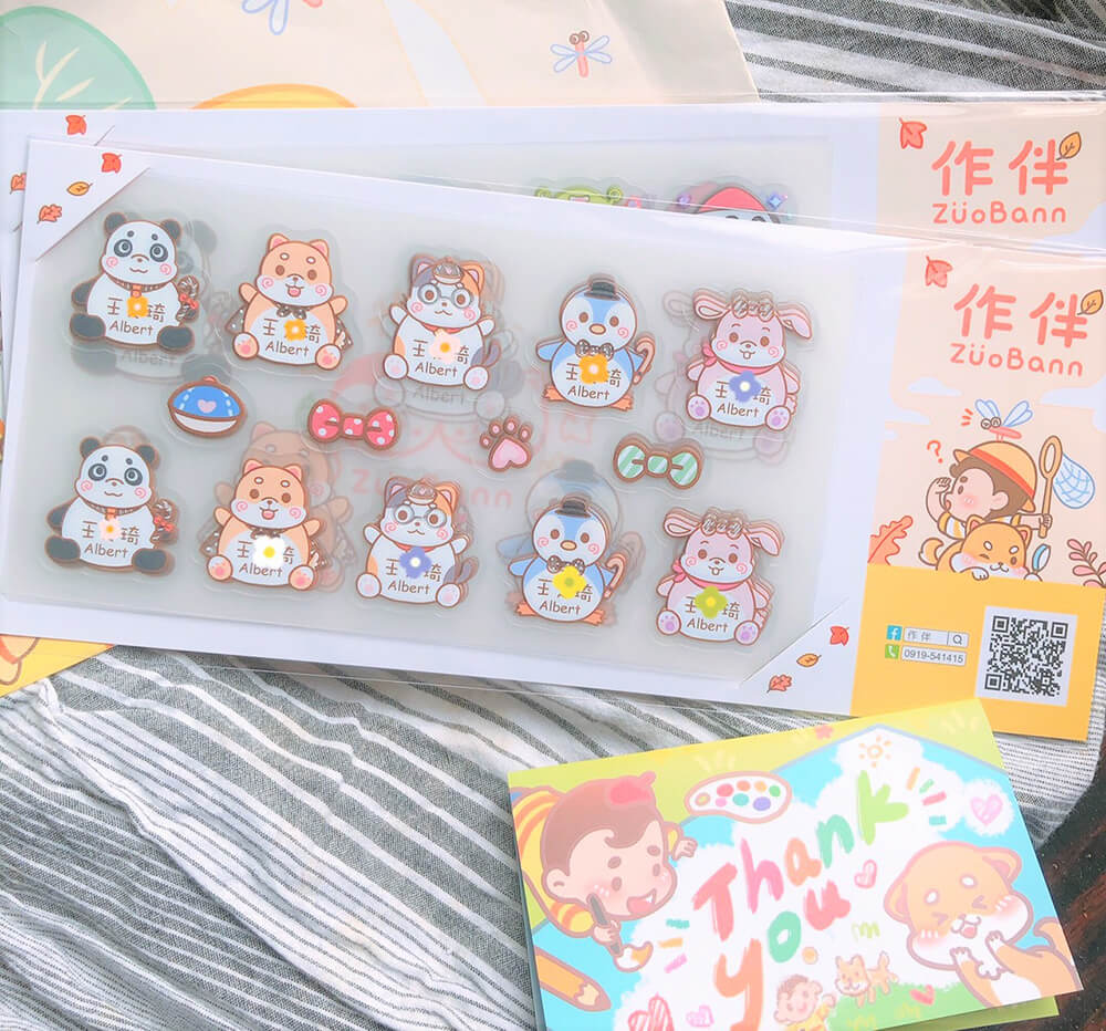 作伴姓名貼,手繪的可愛圖案,特殊白墨設計及防水,