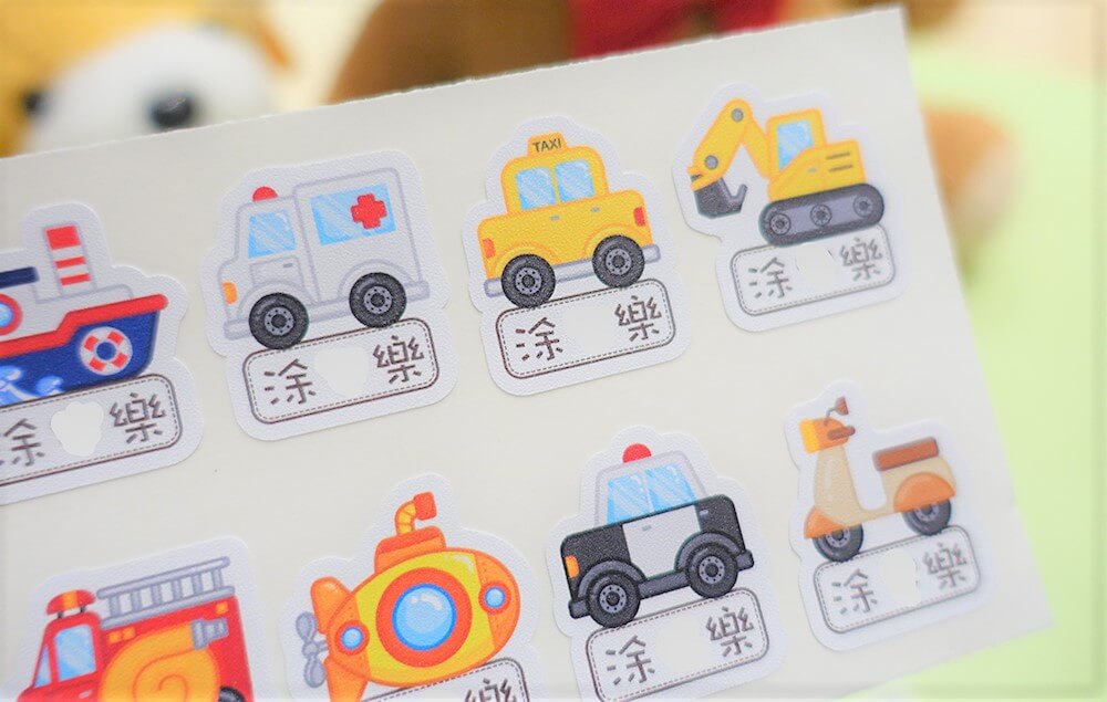 不論是餐具、書本或是水壺、玩具等等,都需要貼上姓名貼