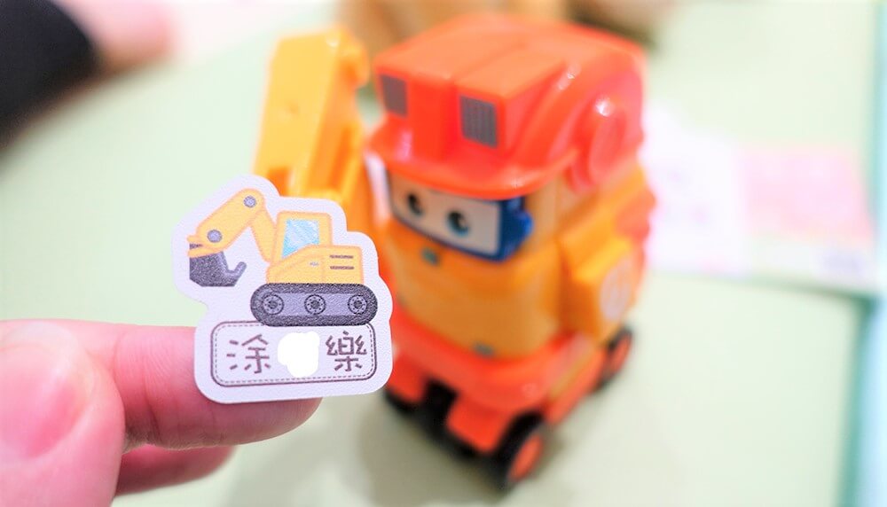 讓小孩帶去學校玩回來後作伴姓名貼仍然乖乖地在玩具上,