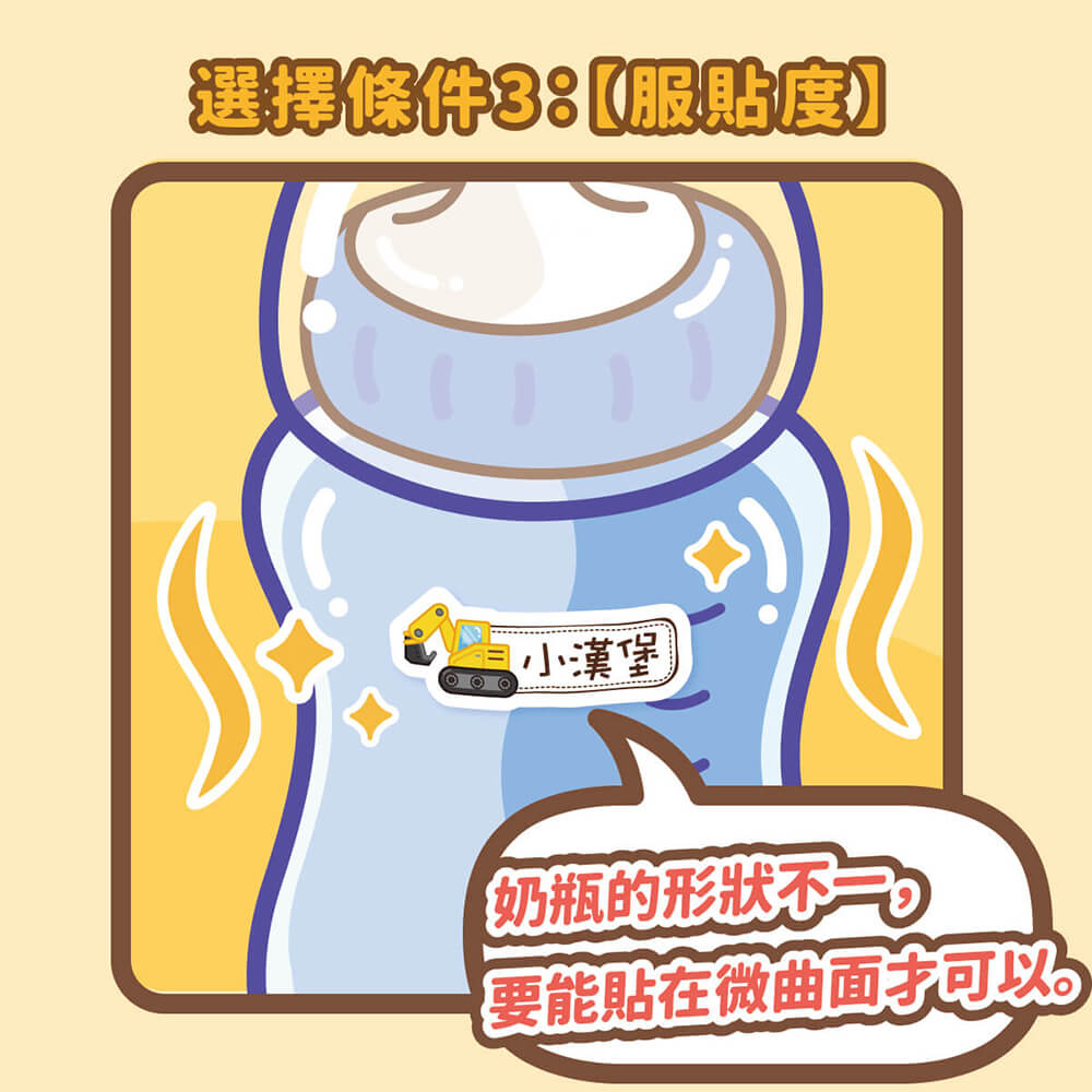 所以奶瓶姓名貼考慮首要應該是「防水」。