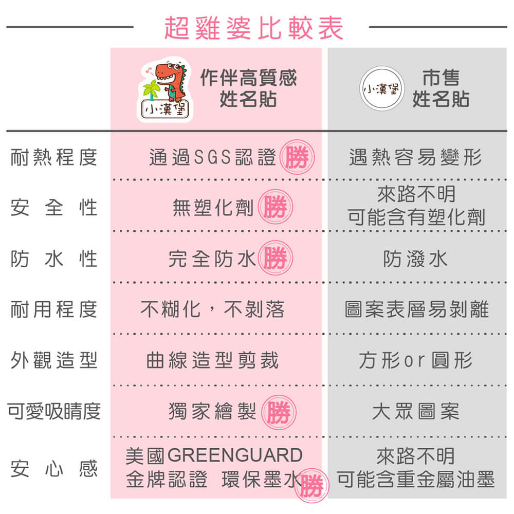 最後附上作伴奶瓶姓名貼和一般市售貼紙比較表👇
