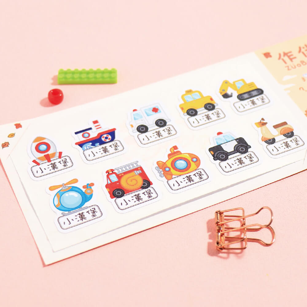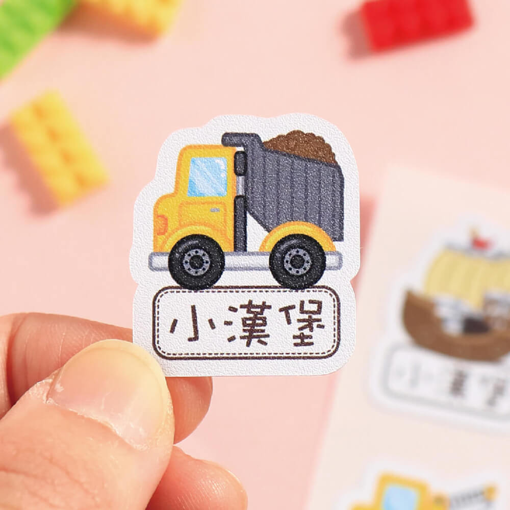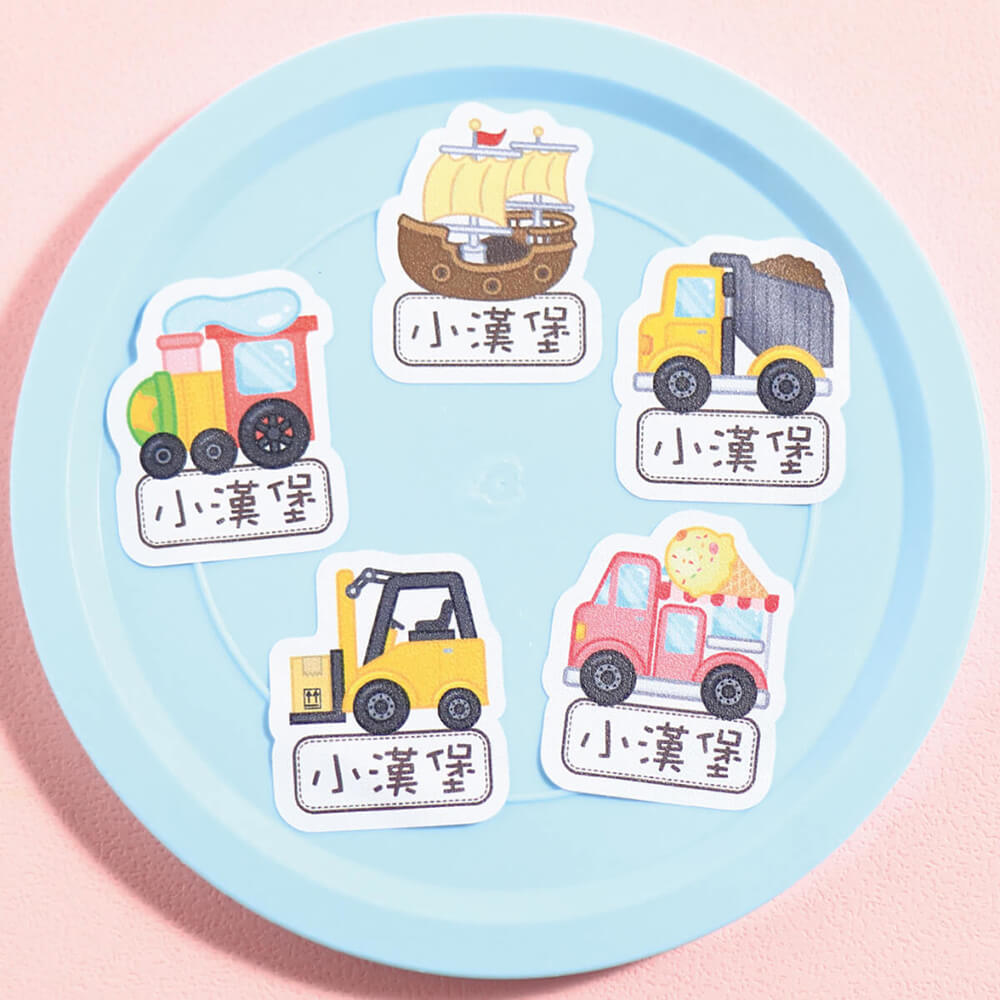 我們家那隻也是選了老半天,才終於決定要車車圖案的姓名貼🤣