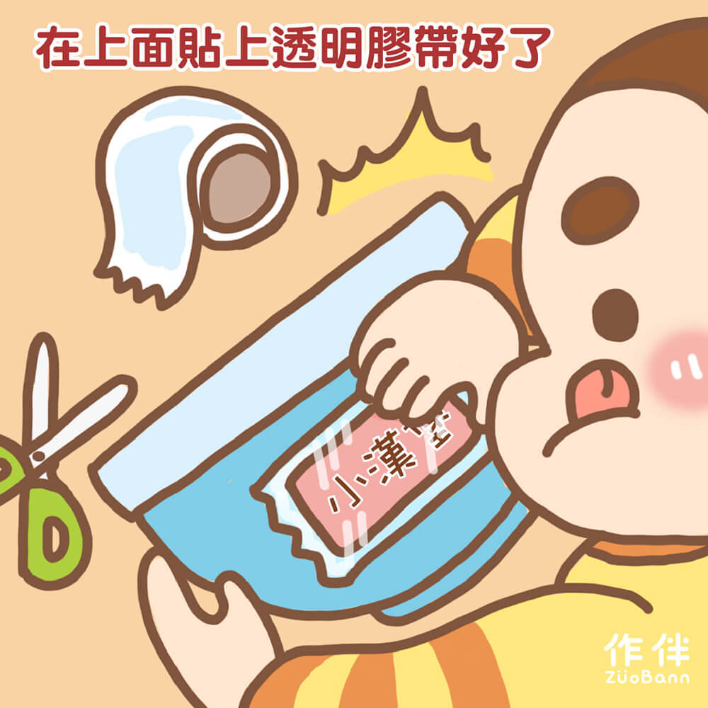 但其實…..在姓名貼紙上面黏透明膠帶,不是個長久之計,頂多撐一下下......