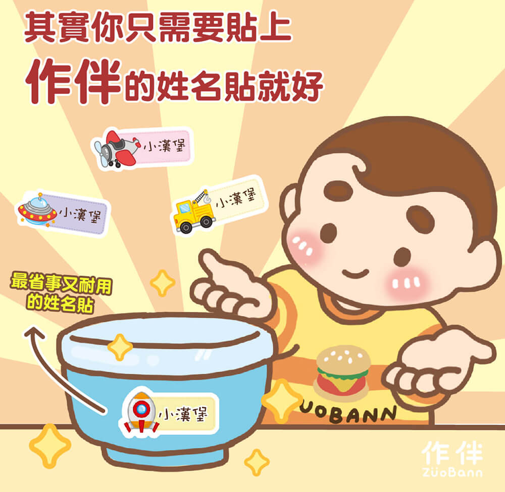 只需要簡單貼上作伴姓名貼即可,防水又耐用!